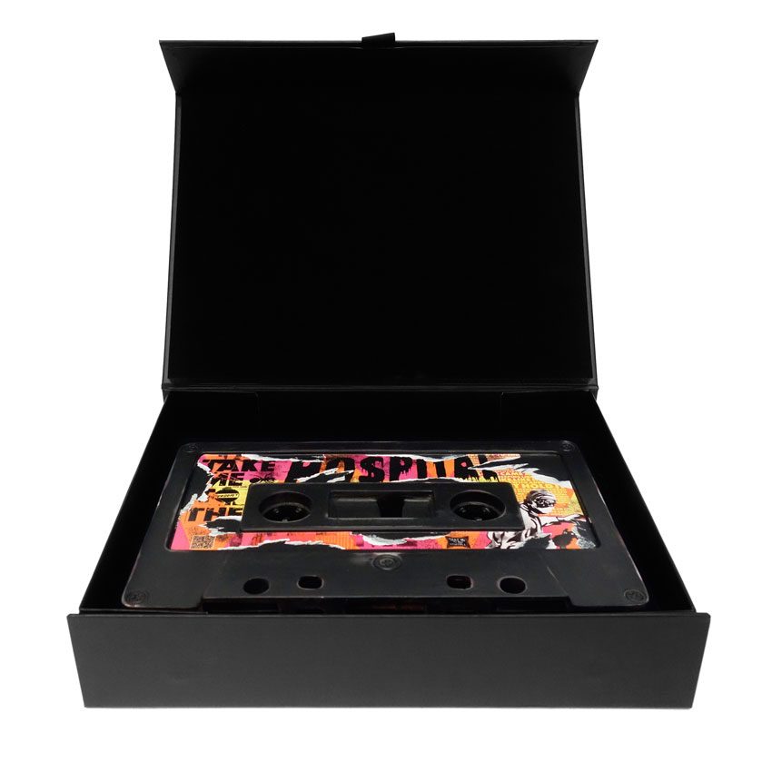 All the cassette tapes, features a fully operational QR code, which allows the user to listen to the cassette which contains a tracklist.